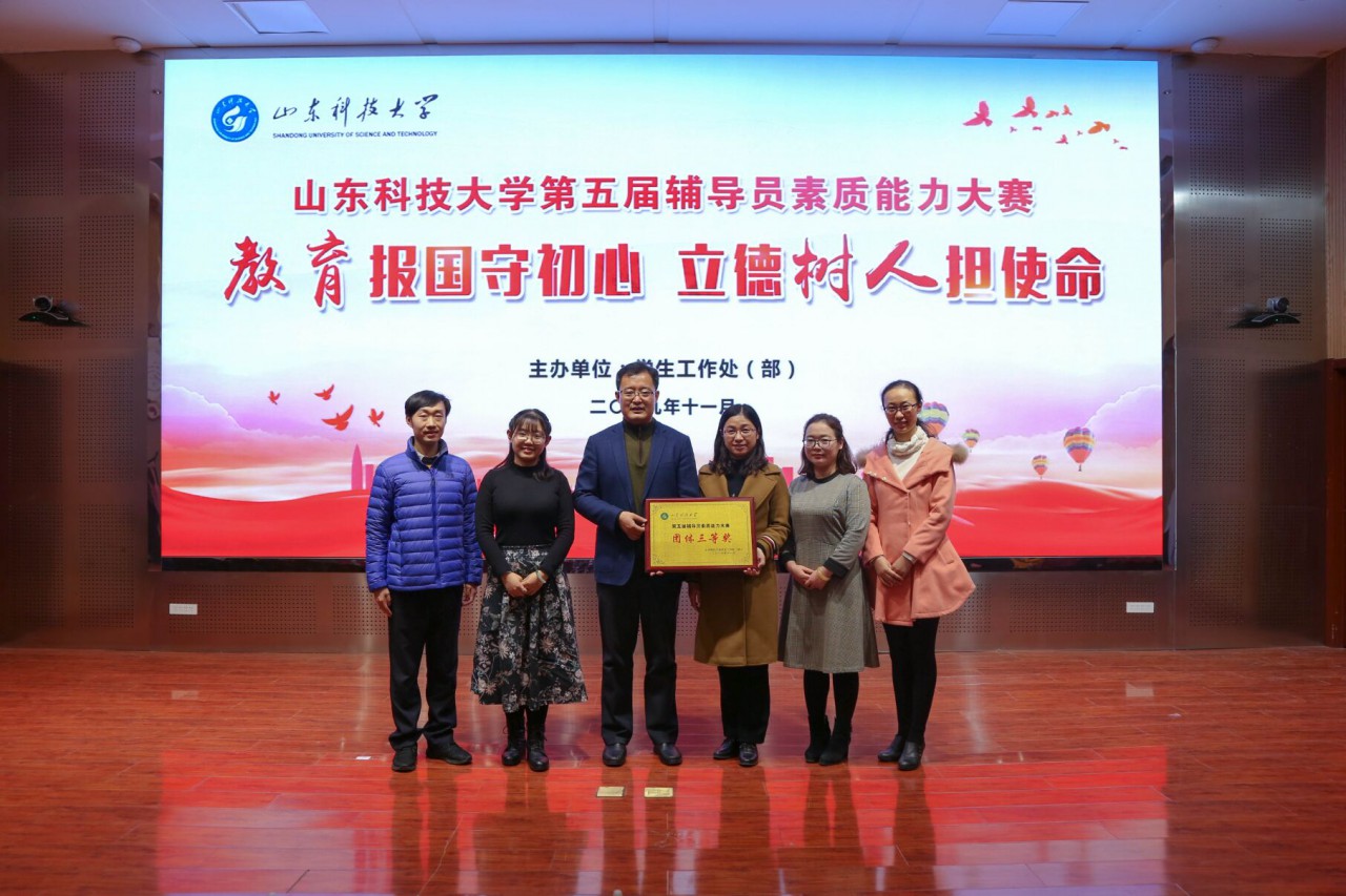 点击:11月29日,山东科技大学第五届辅导员素质能力大赛正式落下帷幕。澳门电子pg游戏官网选派的2019级辅导员樊玉华、2016级辅导员耿倩、2018级祝月盈三位老师经过激烈角逐,获得团体三等奖、全校第四名的好成绩。