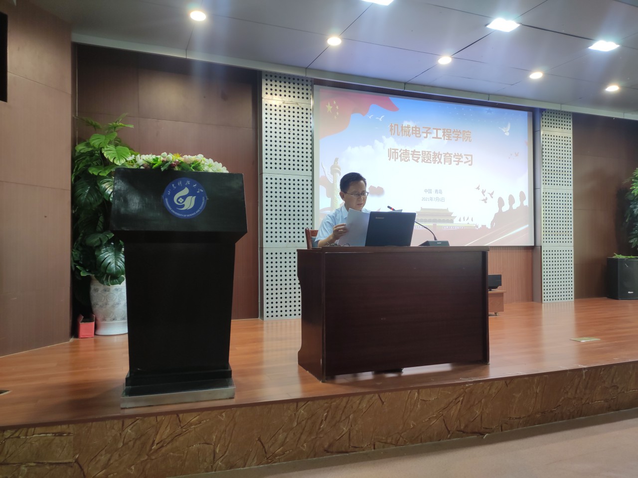 点击:为进一步强化学院师德师风建设,提高全体教职工职业道德素养,落实立德树人根本任务,7月6日,澳门电子pg游戏官网在J8-202报告厅召开全体教职工大会,开展师德专题教育学习,韩宝坤做了题为《加强和改进新时代师德师风建设》的专题报告。