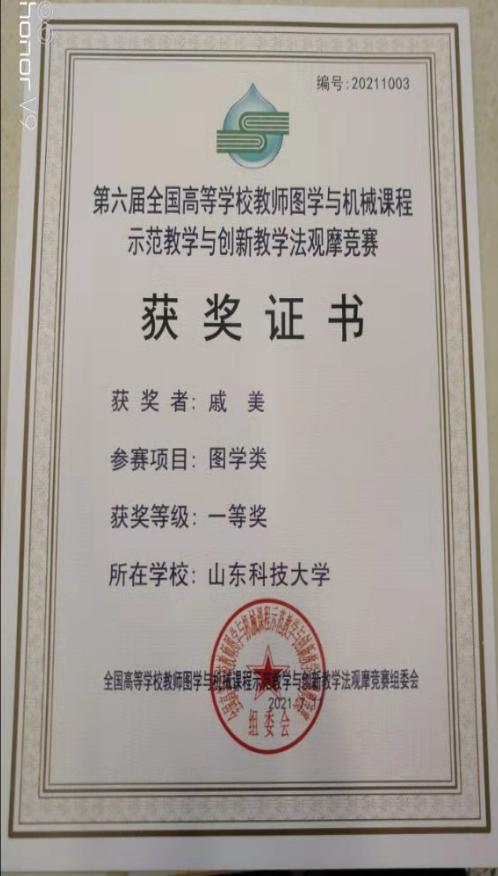 点击:2021年7月9日-11日,第六届全国高等学校教师图学与机械课程示范教学与创新教学法观摩竞赛在南通大学举行。澳门电子戚美教授参加了此次比赛,其丰富的教学内容、灵活的教学方法、扎实的教学基本功及优秀的课件制作得到专家和评委的肯定,获得图学类全国一等奖(第3名),充分展现了澳门电子教师热爱教学、勇于创新的风采,为学校争得了荣誉。