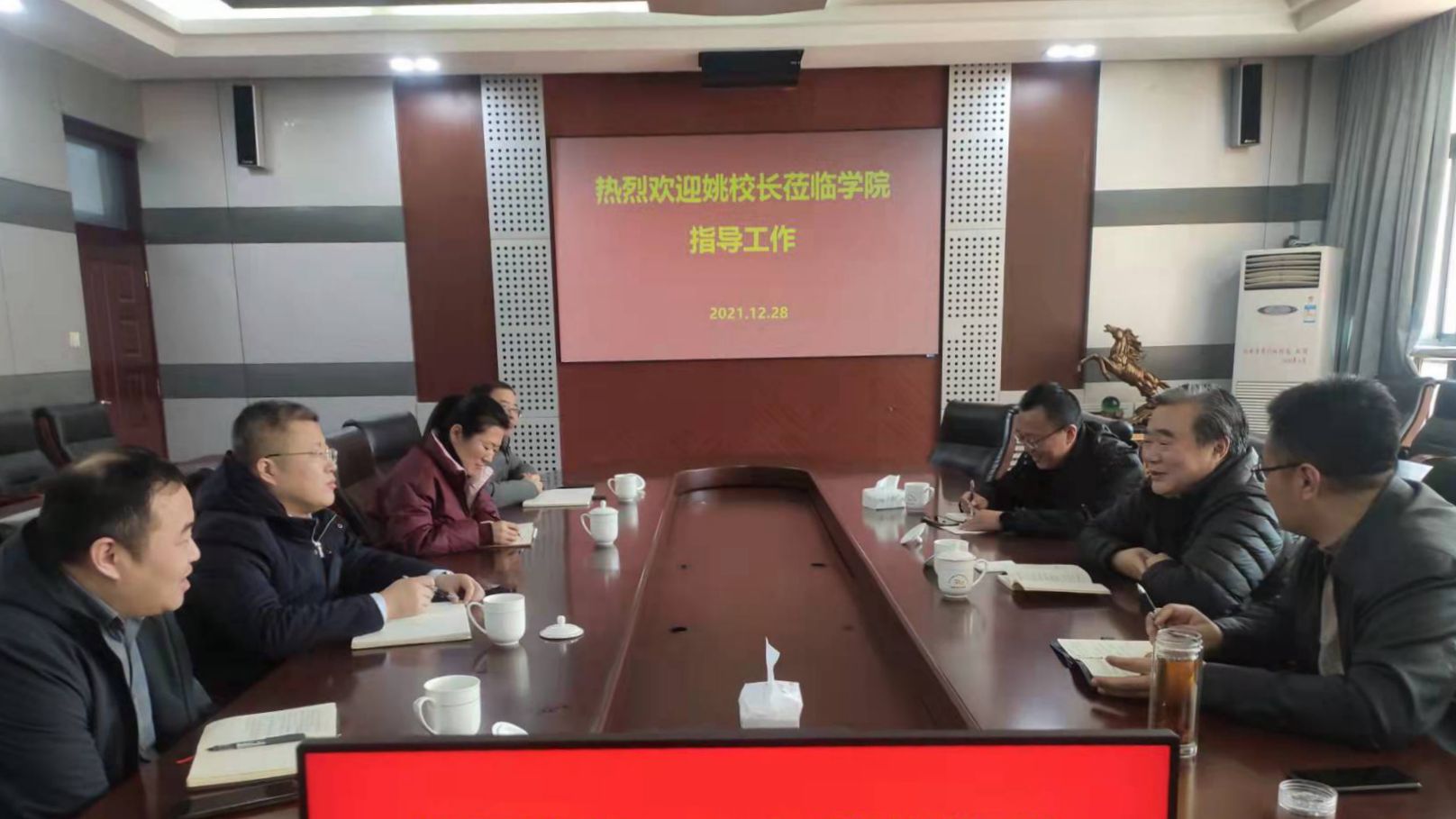 姚校长认真听取了学院领导班子的汇报和建议,对学院2021年取得的成绩给予了充分的肯定,并与参会人员进行了深入交流,对学院发展中遇到的问题进行了探讨。