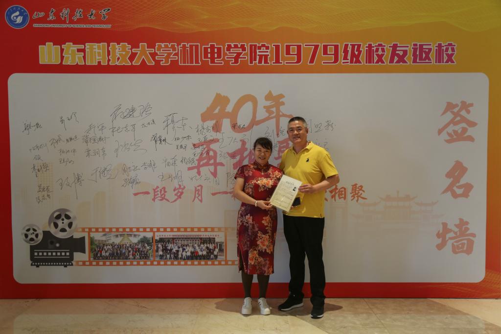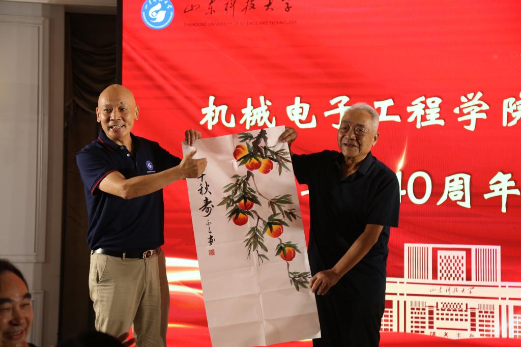 9月18日下午,校友们陆续报道,在签名墙前签字、合影留念,手里拿着的入学档案是对青春的眷恋与怀念。当日晚间,澳门电子pg游戏官网举行校友聚会晚宴,83岁的退休老教师宋奎武接过校友送上的“寿桃图”,并为校友们送上真挚的祝福。校友们踊跃发言,一同回忆过往、见证当下、展望未来,彼此祝福明天越来越好,共同祝愿山东科技大学越办越好。