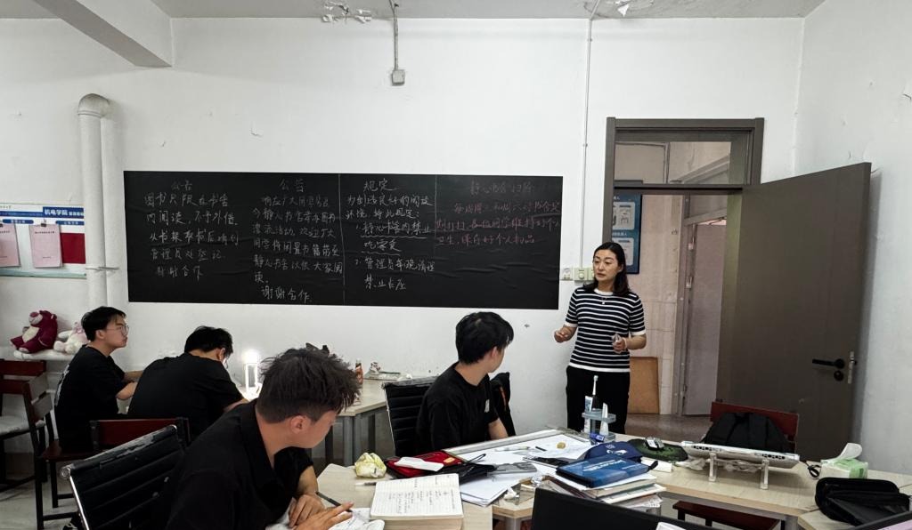 检查过程中,刘梅月督促辅导员提醒各年级学生落实常态化通风消毒措施,强化饮食健康管理。在走访毕业生宿舍时,她认真了解学生考研就业进展、毕业设计完成情况,鼓励毕业生做好规划;面对低年级学生,她细致了解学业适应状况与思想动态,暖心叮嘱:“有困难随时找辅导员,学院永远是你们的坚强后盾。”同时,她对辅导员队伍提出明确要求,通过强化日常走访与深度关怀机制,将学生工作做深做实。