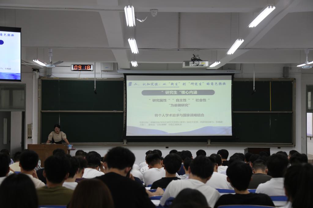 “专业教育”板块由院长助理吕玉廷主讲,他系统解读了学校研究生培养体系的核心内容。从研究生培养目标的设定、培养环节的推进、培养过程的管理,到培养管理模式的创新,再到提升培养质量的系列举措。吕玉廷层层递进,帮助新生构建起研究生阶段学习发展的完整框架,有效增强了同学们对学校及学院的认同感与归属感,进一步拉近了新生与校园的心理距离。此外,他还对学院雄厚的师资力量、多元的研究方向及广阔的毕业工作前景进行深入介绍,助力新生全面且深入地认识专业领域,为后续科研学习找准方向。