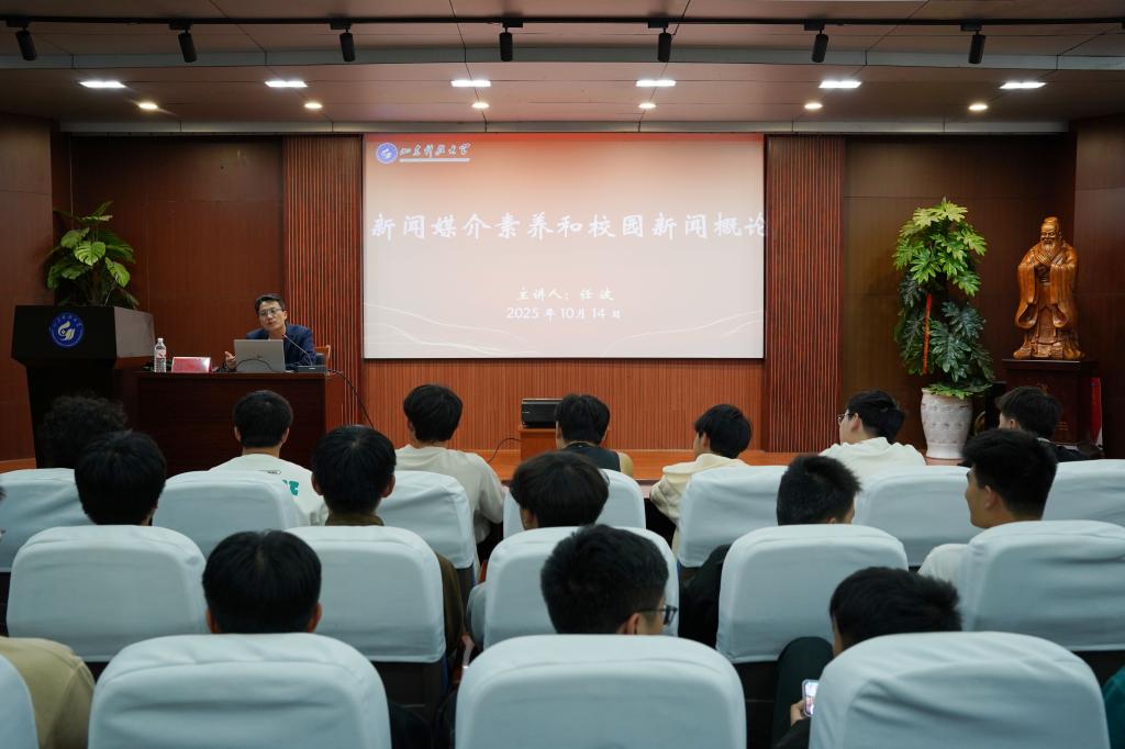 为进一步提升学生新闻采写水平与宣传工作专业素养,筑牢学院学生宣传队伍能力根基,10 月 14 日,澳门电子pg游戏官网于 J8-202 学术报告厅举办新闻基本素养专项培训活动。本次培训特邀学校融媒体中心任波老师担任主讲,澳门电子pg游戏官网辅导员曲岩主持,澳门电子pg游戏官网媒体部全体成员、学生会各部门成员及大一大二各班宣传委员共同参与学习,现场学习氛围浓厚。