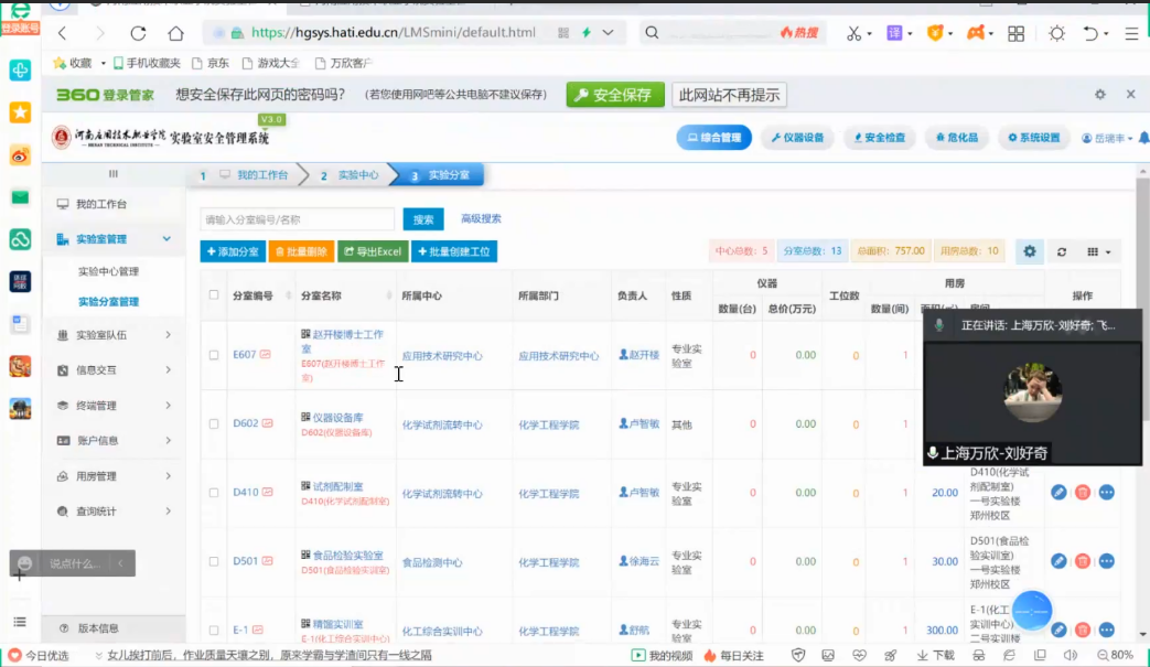 为进一步强化实验室管理工作意识,切实提升实验室安全信息化管理水平。4月27日,bat365官网邀请上海万欣计算机信息科技有限公司工程师刘好奇对实验室安全管理平台的使用开展培训,教务处相关负责人、各二级学院实验室安全负责人、实训室管理员参加了培训学习。