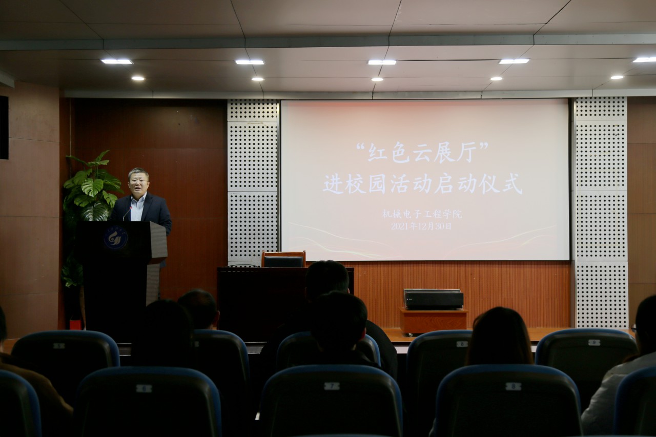 点击:为深入学习贯彻习近平总书记在庆祝中国共产党成立100周年大会上的重要讲话和党的十九届六中全会精神,进一步推动党史学习教育向纵深发展,12月30日下午,澳门电子pg游戏官网在J8-202报告厅举办“红色云展厅”进校园活动启动仪式,澳门电子pg游戏官网党委书记李双立,党委副书记、副院长陈猛出席活动,学院师生党员代表参加活动。