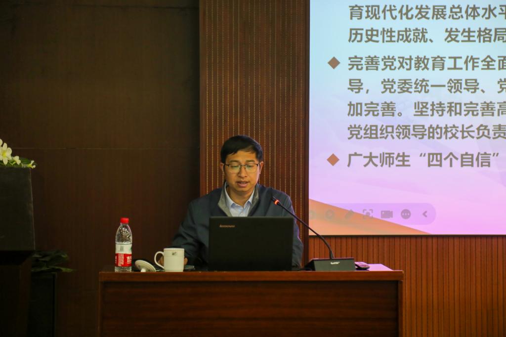 阳凡林以“深入学习贯彻党的二十届三中全会精神 深化教育综合改革”为主题,从“充分认识新时代新征程深化教育综合改革的重大意义、深刻认识党的十八大以来教育综合改革取得的显著成效、扎实抓好深化教育综合改革的重点举措落实”三个方面,结合国内外高等教育发展趋势,深入浅出地分析了当前我国教育改革面临的新形势新任务,全面解读了深化教育综合改革的核心要义。