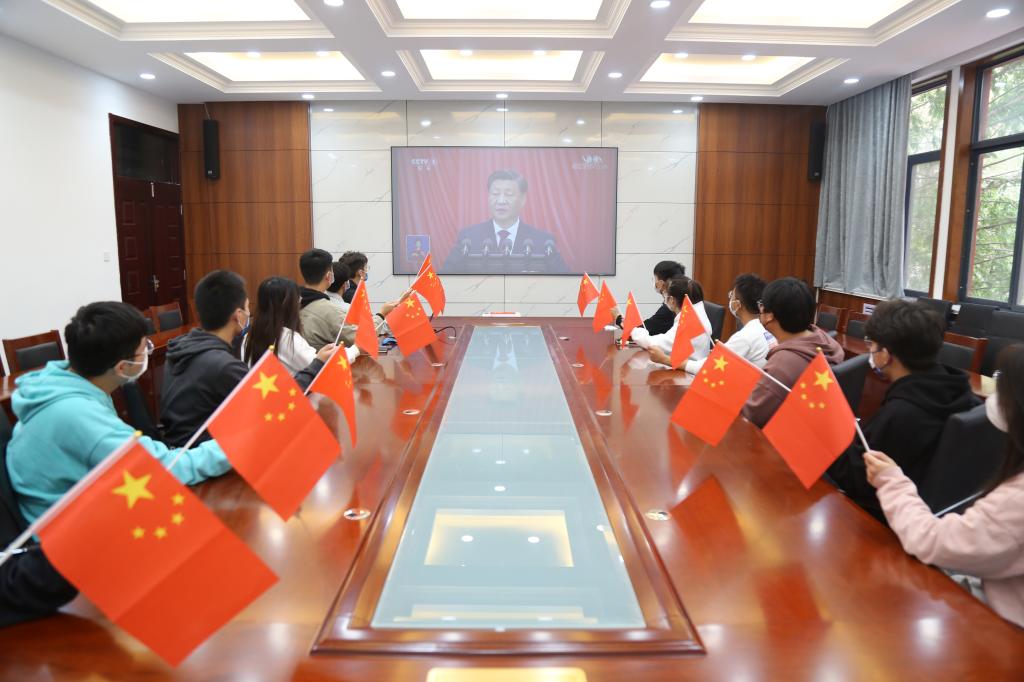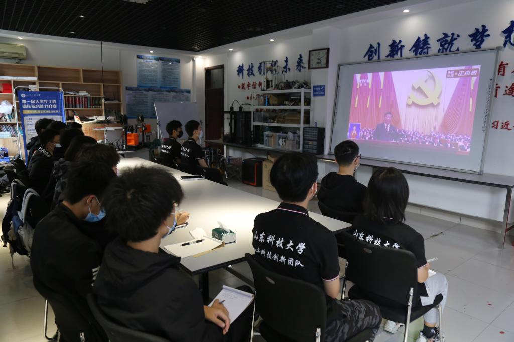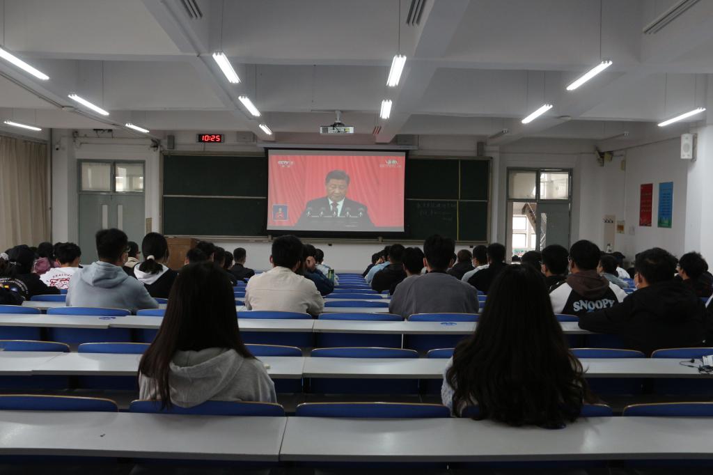 “高举中国特色社会主义伟大旗帜,全面贯彻习近平新时代中国特色社会主义思想,弘扬伟大建党精神,自信自强、守正创新,踔厉奋发、勇毅前行,为全面建设社会主义现代化国家、全面推进中华民族伟大复兴而团结奋斗……”习近平总书记铿锵有力的话语在学院楼、教学楼不断回荡,澳门电子pg游戏官网青马工程启航班、嵙大·海信班、小平科技创新团队党支部、梦耀中华服务宣讲团、小平科技创新团队、退役复学学生以及各党团支部于报告厅、会议室、教室集中观看二十大开幕盛况,聆听习近平总书记代表十九届中央委员会向大会所作的报告。会议中同学们都聚精会神聆听习近平总书记的重要报告,时而响起激动的掌声。
