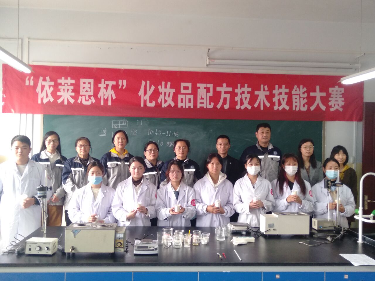 2021年10月23日,第一届“依莱恩杯”化妆品配方技术技能大赛在bat365正版唯一官网实训楼D楼成功举办。化学工程学院院长朱冰,郑州依莱恩生物科技有限公司经理袁少川,化妆品生产技术教研室全体教师出席本次大赛开幕式,共37名学生参加比赛。
