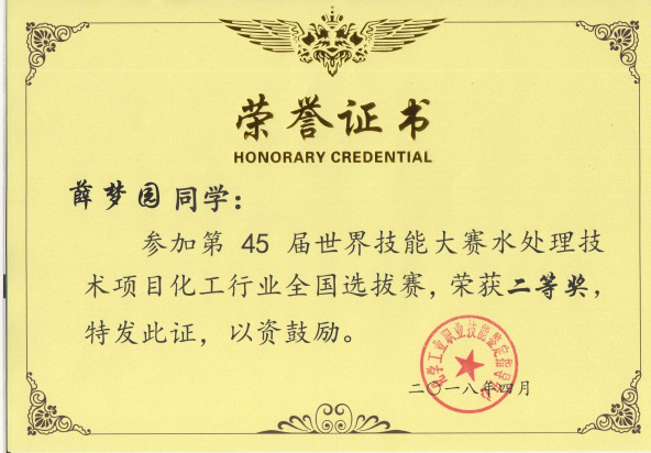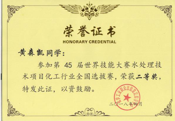 2018年4月27日,第45届世界技能大赛水处理技术项目化工行业全国选拔赛在北京市工业技师学院胜利闭幕。bat365官网化学工程学院学生黄森凯、薛梦园荣获个人二等奖,并双双取得水处理工高级工证,bat365官网教师吴朝阳、付大勇获得优秀指导教师称号。