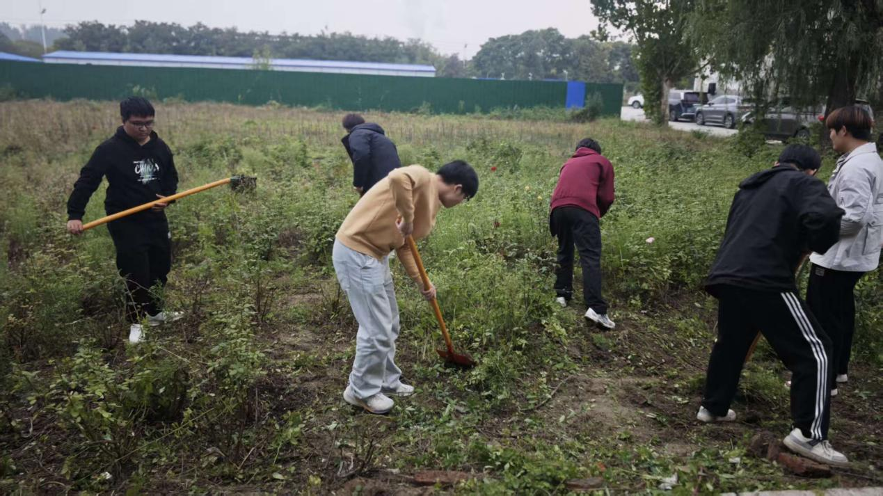 从对农具的陌生到熟练使用,从最初的不知所措到后来的井井有条,这片土地见证了同学们从课堂走向田野的实践跨越。活动现场,同学们感触良多。一位正在奋力翻地的同学抹去额头的汗水,激动地说:“平时我们在实训室学习的化工设备操作,在课堂上学的是化工原理,今天拿起锄头,才真正体会到什么是‘脚踏实地’。这不仅是一次体力劳动,更是一次精神上的洗礼。它让我们懂得了奉献与收获的关系,这对我们理解化工生产的严谨与责任大有裨益。”