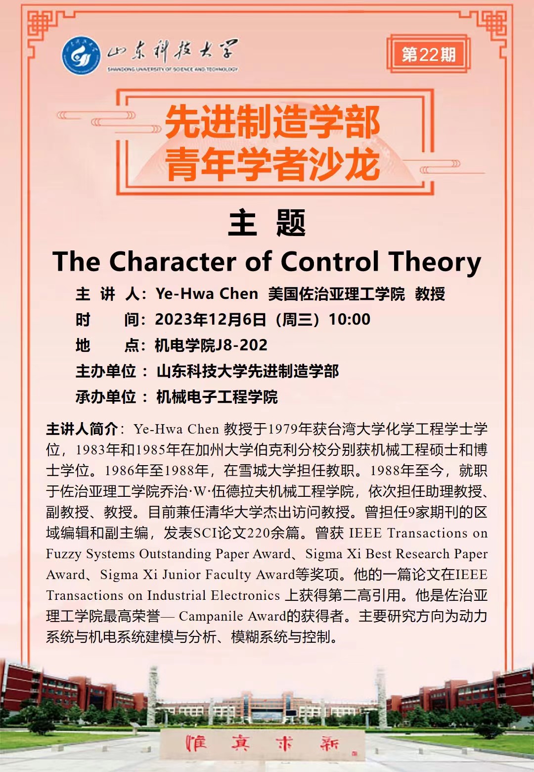 先进制造学部青年学者沙龙(第22期):The Character of Control Theory