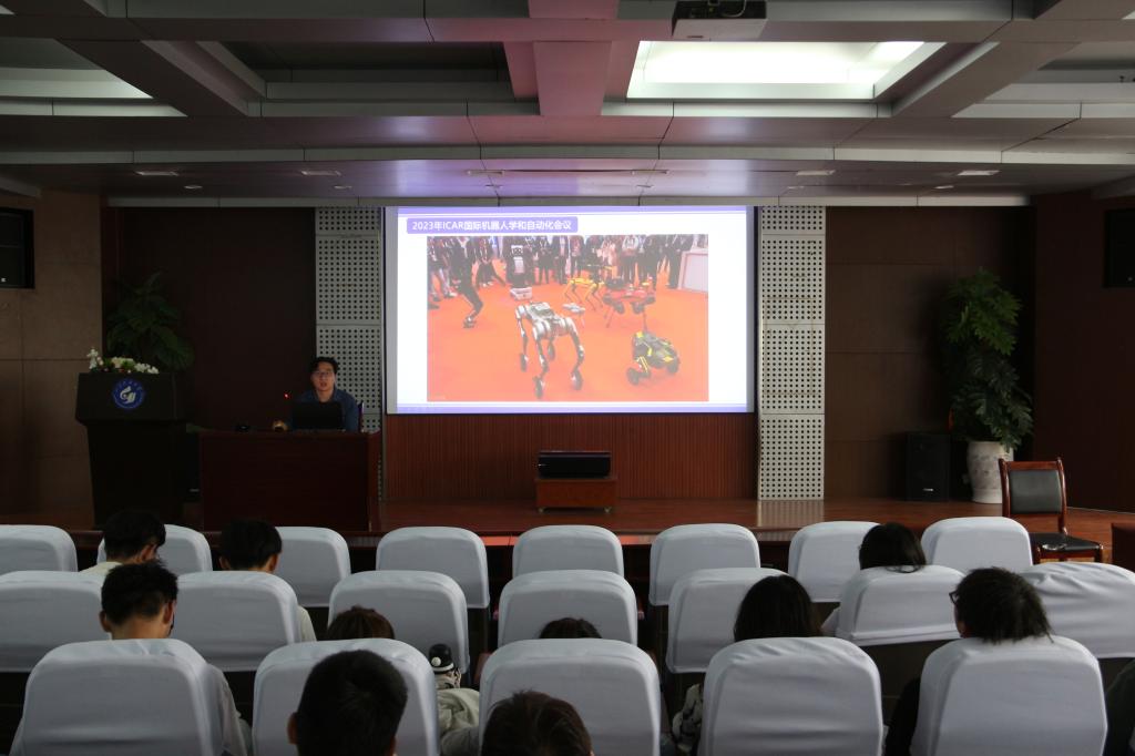 甘兆露将科创比赛进行了分类解读,详细介绍了移动机器人设计的相关技术,并鼓励同学们积极参加各项科技创新比赛,在比赛中锻炼个人能力、培养科技创新思维,以科创赋能人生,以智造引领传承。