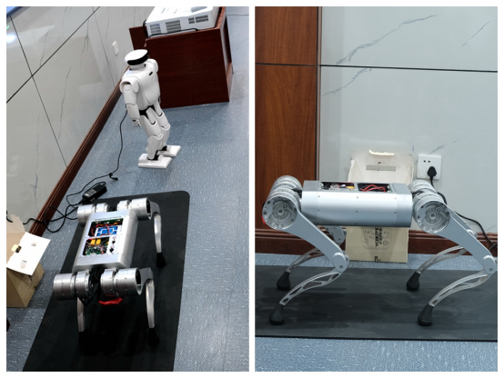 “小朋友们看看这些机器人都长得像什么呀?有什么特点呢?这些机器人可以用在哪些地方啊?”活动伊始,小平科技创新团队负责人刘一航现场展示了机器人协会开发的“机械狗”和“机器人”,并不时穿插着趣味小问题。精心设计的现场演示引发了小朋友们极大的兴趣和好奇心,当看到这些从未接触过的新奇事物时,纷纷提出了自己好奇的问题,随着对机器人工作原理的解释,小朋友们心中的疑惑逐渐解开。