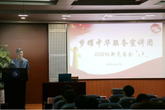 点击:为了激发同学们参与社会实践的积极性,树立“在实践中奉献”的观念,4月17日-18日,澳门电子pg游戏官网梦耀中华服务宣讲团于学院楼报告厅举办2022年纳新见面会。澳门电子pg游戏官网团委老师苗成旭,梦耀中华服务宣讲团2019级队长杨忠源、刘璐璇出席会议。