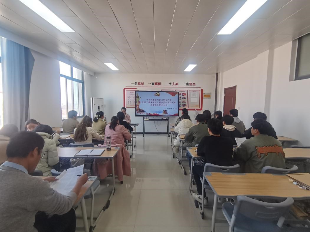 为进一步加强和推进党员队伍建设,切实提高党员发展质量,保持党员队伍先进性和纯洁性。2023年11月15日,化学工程学院党总支学工支部于A512党员活动室召开预备党员接收大会,学工支部全体党员参会,会议由学工支部组织委员何璐红主持。
