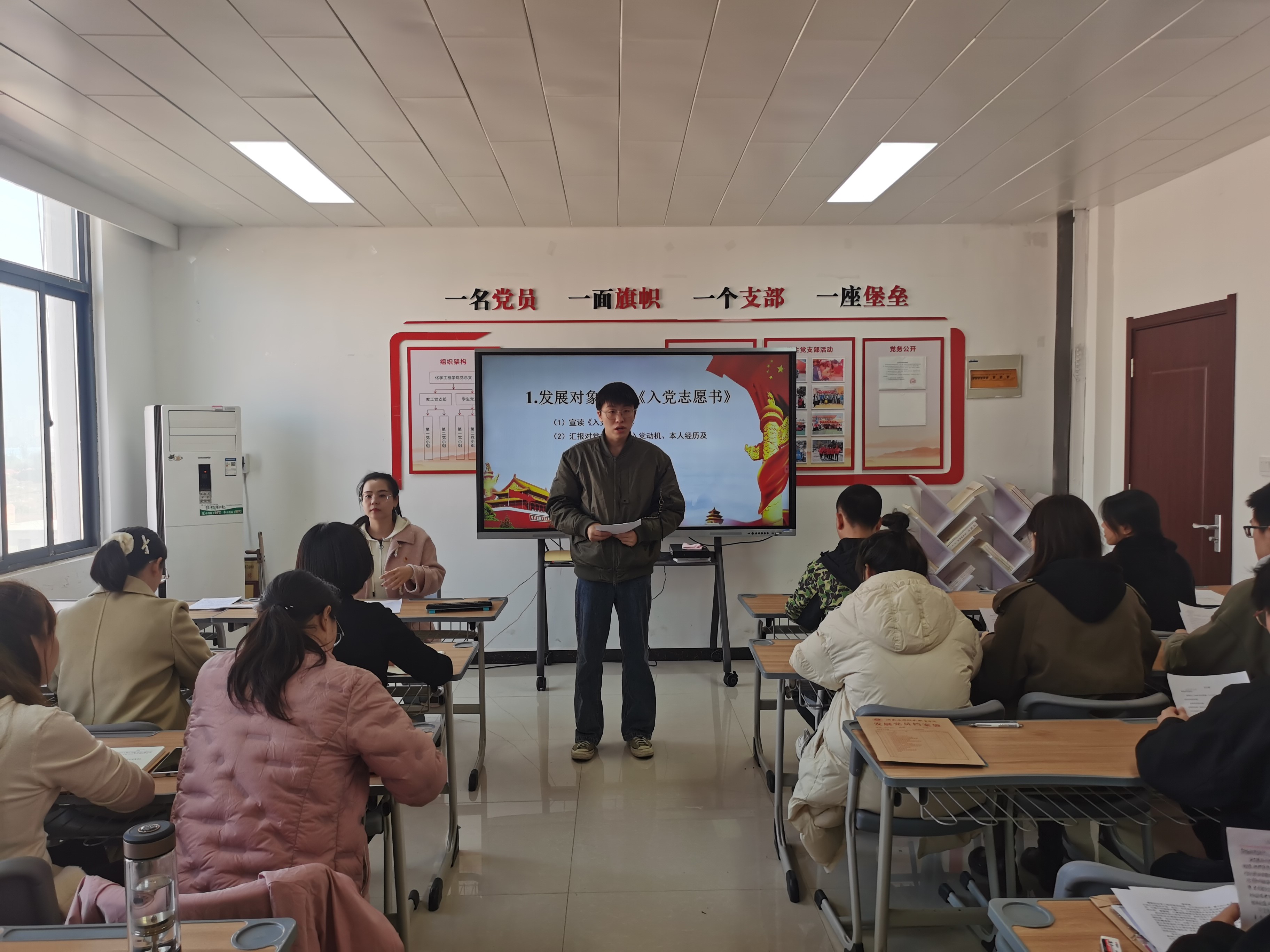 张黎君老师代表支委会向大会报告了15名发展对象的审查情况和支委会意见,并对是否符合党员条件发表意见并组织进行充分讨论,经支部大会正式党员无记名投票表决,同意接收胡正阳等15名同志为中共预备党员。