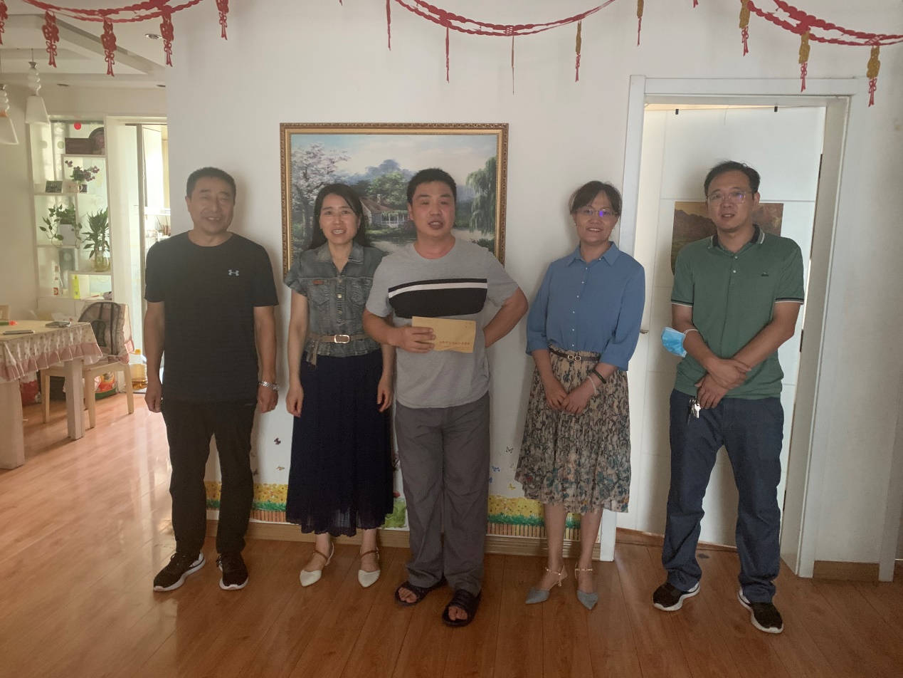 化学工程学院党总支书记蔡庄红、院长朱冰和校组织部副部长孙丽娜代表学校与学院对困难双职工家庭何永福家庭发放了慰问金,并详细询问了解其家庭工作及何老师身体恢复的进展等情况,并鼓励何永福和王会枝要树立信心、不放弃和学校共同发展。