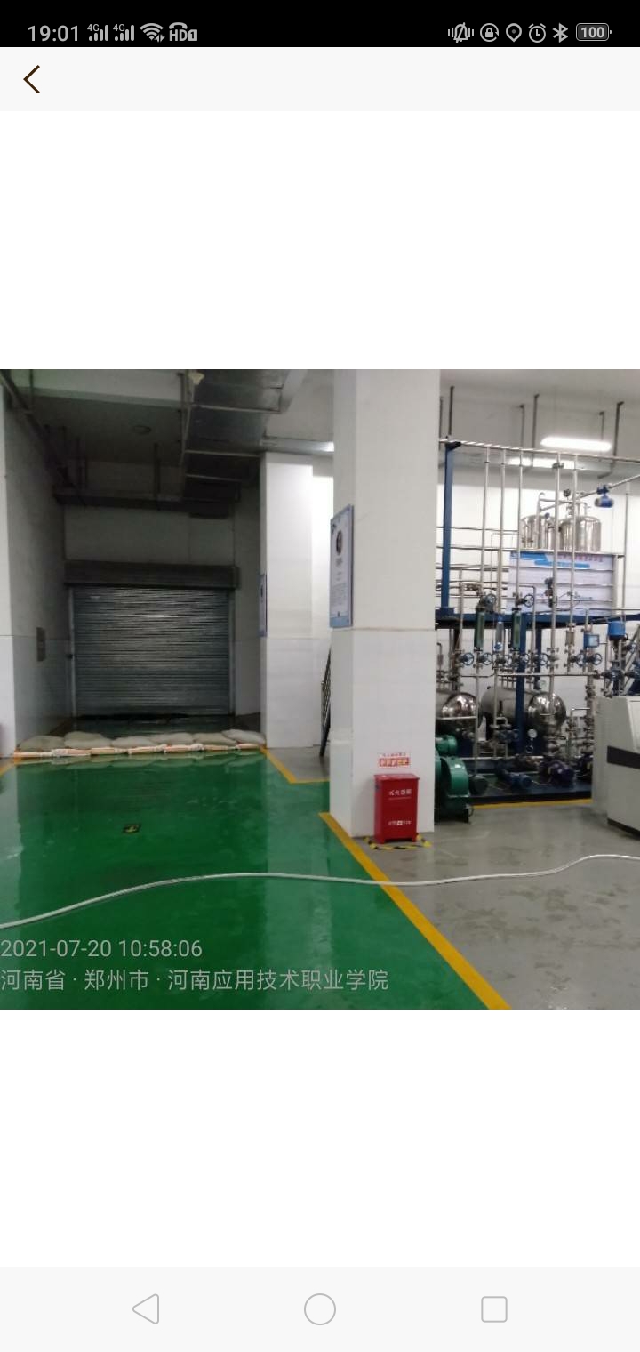 2021年7月20日,郑州一场百年不遇、突如其来的暴雨灾害将昔日美丽的校园变成一片汪洋。观察到道路水位上涨,化学工程学院学院院长朱冰和实训室管理员舒航老师当天上午就赶到学校用沙袋对低洼处进行了防水阻断,减少进水对其他实训室的影响。