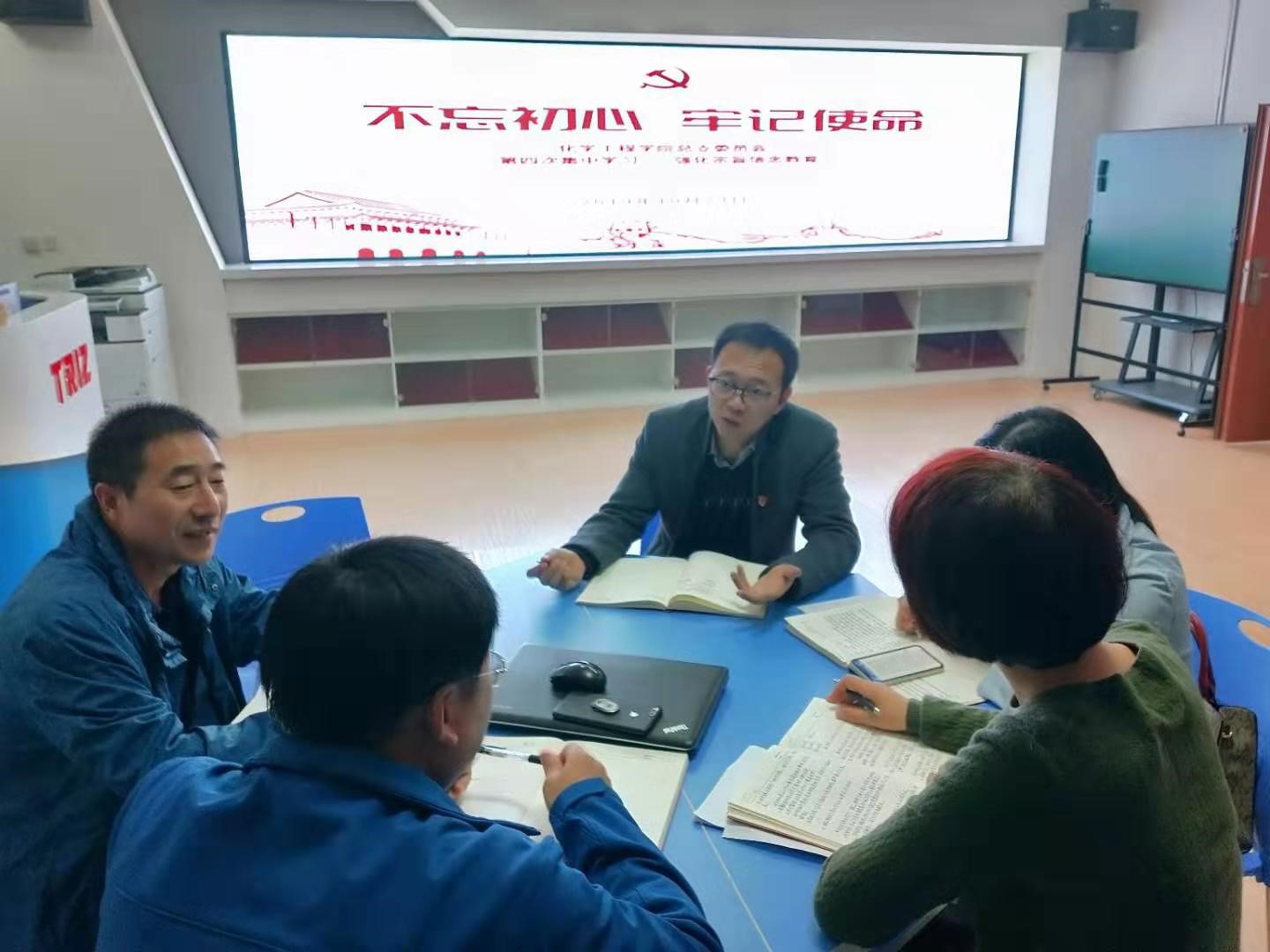 2019年10月23日下午,化学工程学院党总支委员会组织召开了“不忘初心、牢记使命”第四次集中学习会议。会议由党总支书记蔡庄红主持。