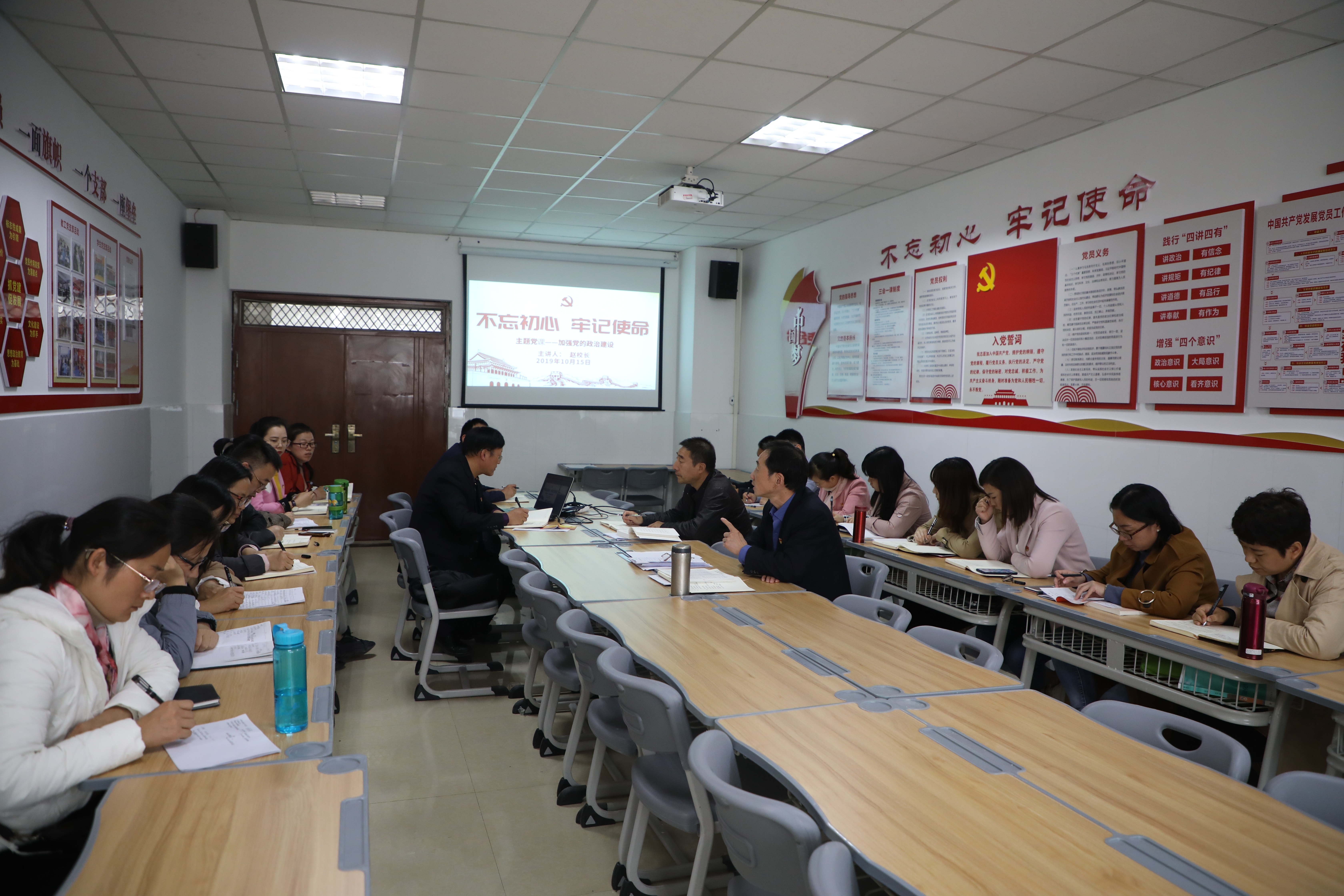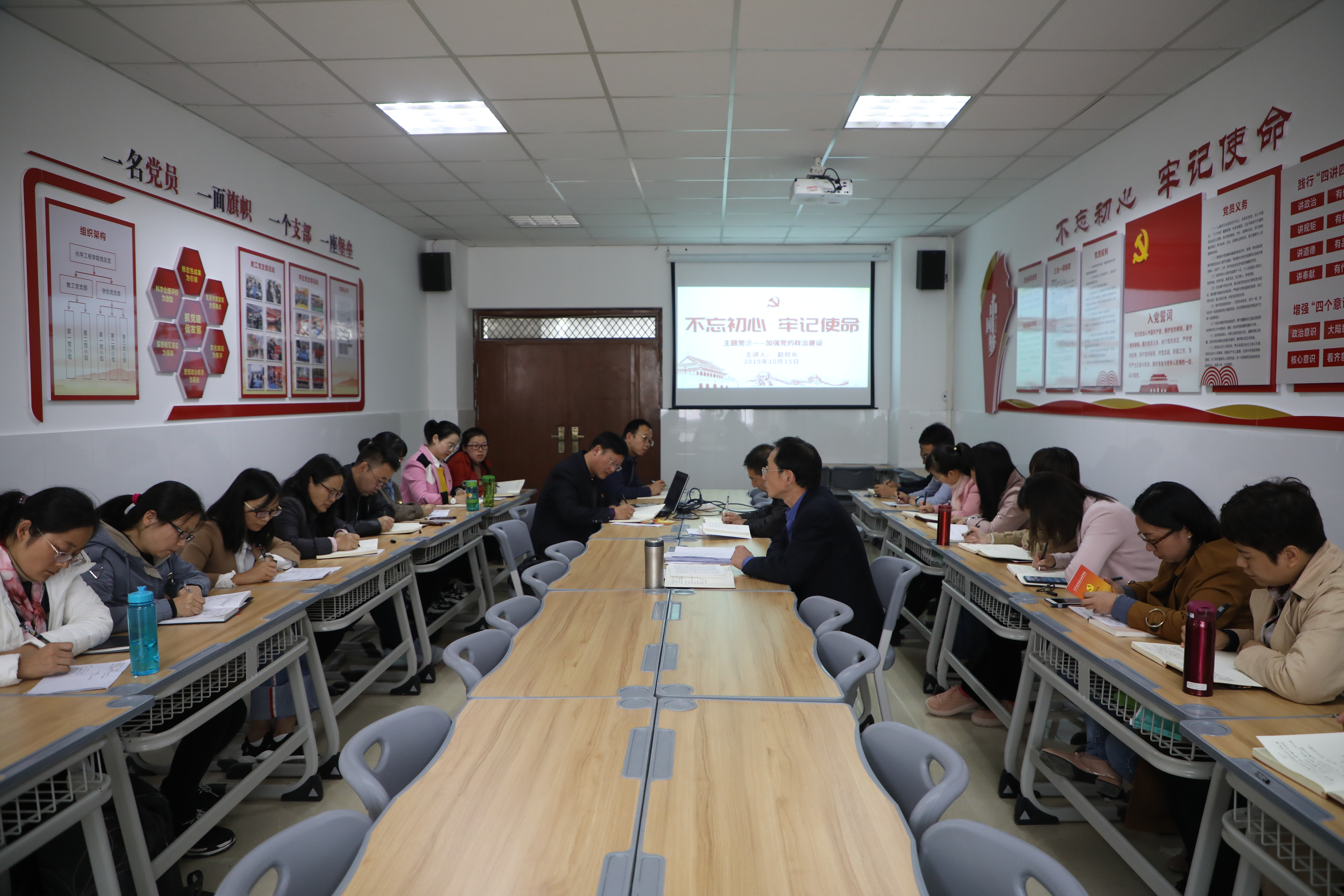 2019年10月16日,校党委委员、副校长赵玉奇同志到bat365官网为全体党员讲党课,主题为——不忘初心、牢记使命、加强党的政治建设。