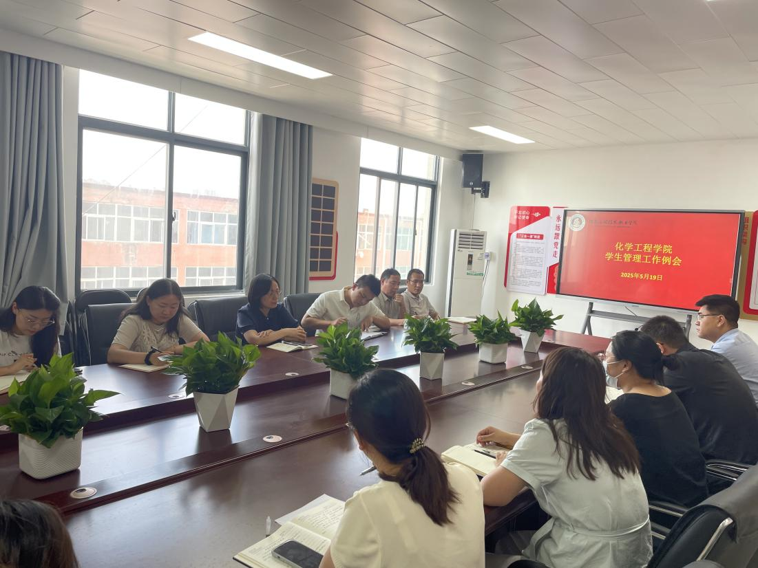 2025年5月19日,化学工程学院于A512召开学生管理工作例会,会议由党总支副书记常惟诚主持,党总支书记陈永惠及全体专兼职辅导员参加会议。