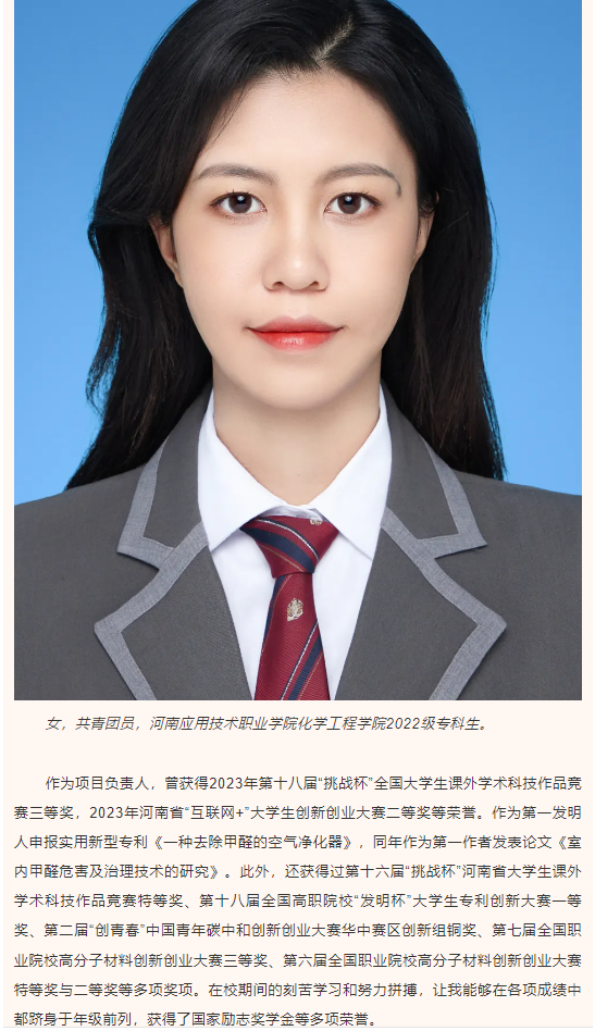经学校初赛、专家评审、 省厅决赛、网络点赞等环节,成功荣获第三届河南省大学生“创新之星”荣誉。