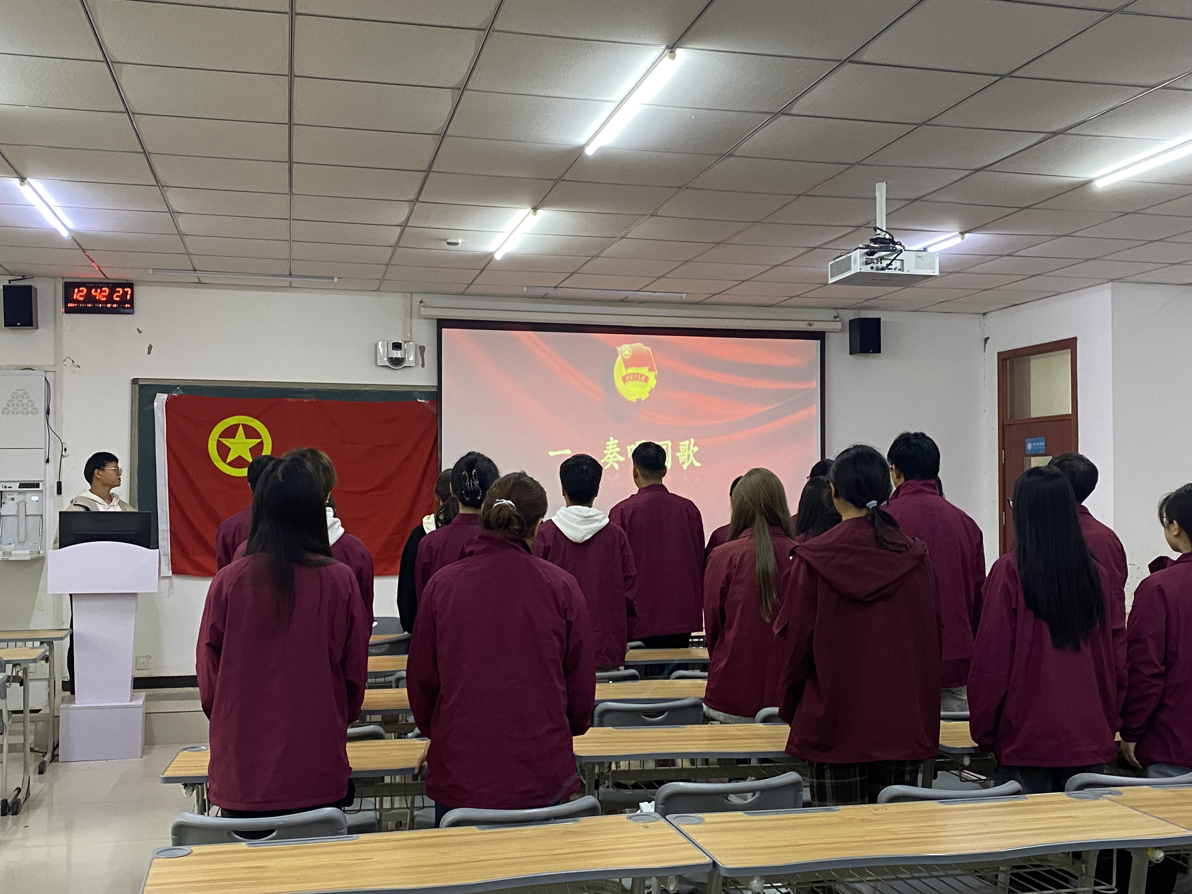 仪式在嘹亮激昂的国歌声中拉开帷幕。主持人董晔豪向新团员们介绍了什么是中国共产主义青年团,进一步加深了新团员们对中国共产主义青年团的理解,也坚定想要加入团组织的决心。