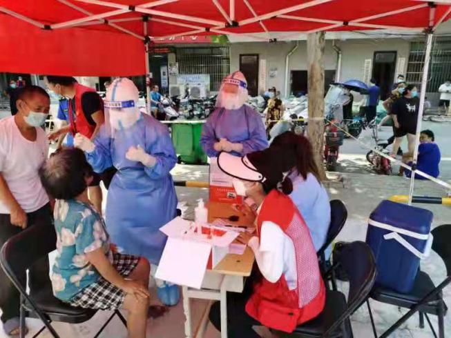 8.1日,在距离郑州特大洪涝灾害十天后,郑州人民又面临一次新的战役–––新冠肺炎疫情防控工作,分析1901班宋纤在听说了这次防疫工作后心中焦急万分,通过公司报名加入了郑州全民核酸检测。炎炎夏日防护服内更是高达四十摄氏度。宋纤同学冒着酷暑,坚守在采样工作岗位上长达5个小时。更是在中暑后仅休息四十分钟后继续投入采样工作中。作为一名学生她本可以退却,但是作为一名采样人,她要克服困难坚守岗位,为郑州的防疫工作尽自己的绵薄之力。