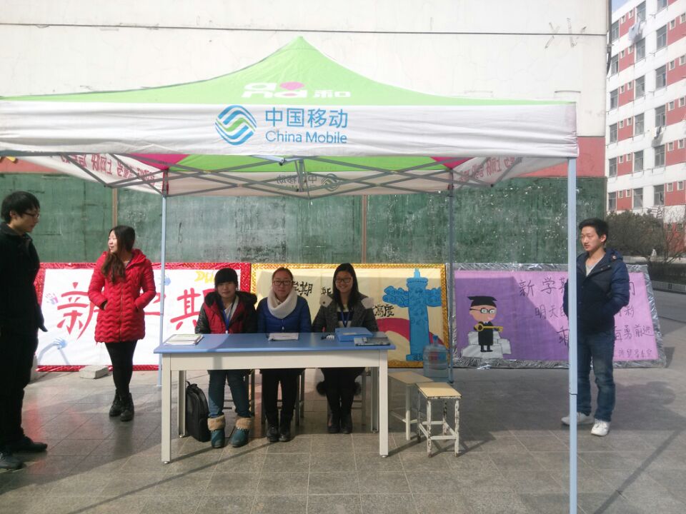 于3月10日早7:25,在负责人孔金圆的带领下,由韩青青、靳春浩、程铭、岳晓男、王振华、裴迪等人的协助下,对活动现场进行了布置,搭帐篷、搬桌子、拉水、搬宣传报、整理文件,大家分工明确,积极的完成了此次任务。